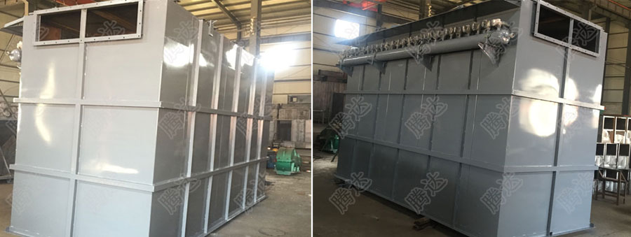 1、進風(fēng)口和出風(fēng)口制成一體,采用斜隔板分隔,氣流分布均勻,對含塵氣體起到預(yù)收塵和阻火星的作用,避免了粉塵直接沖刷布袋,降低了含塵氣體的粉塵濃度,延長了濾袋與脈沖閥的壽命。