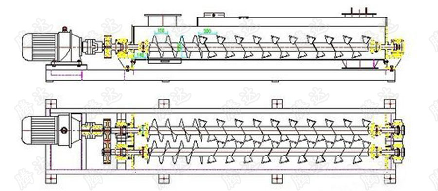 軸攪拌機(jī)主要由機(jī)殼、螺旋軸總成、驅(qū)動(dòng)裝置、配管、蓋板、鏈罩等部件組成: