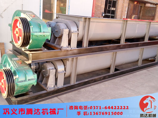 鞏義騰達(dá)生產(chǎn)的雙軸攪拌機(jī)利用兩根呈對(duì)稱(chēng)狀的螺旋軸的同步旋轉(zhuǎn),在輸送干灰等粉狀物料的同時(shí)加水?dāng)嚢瑁鶆蚣訚窀苫曳蹱钗锪,達(dá)到使加濕物料不冒干灰又不會(huì)滲出水滴的目的,從而便于加濕灰裝車(chē)運(yùn)輸或轉(zhuǎn)入其它輸送設(shè)備。主要適用于火力發(fā)電廠、礦山等行業(yè)粉煤灰或類(lèi)似物料加濕裝車(chē)的場(chǎng)合。